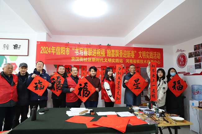 书写春联送祝福,翰墨飘香迎新春。组织志愿者前往帮建的京汉街社区新时代文明实践站,开展“我在新时代文明实践站过佳节”送祝福活动。志愿者以笔为媒,将群众乐于接受和容易理解的移风易俗宣传语写入春联中,让移风易俗的新风尚传播到家家户户,用祥龙图、福字图等传统剪纸作品表达接福纳祥的美好愿景,营造了和谐向上的社会氛围。