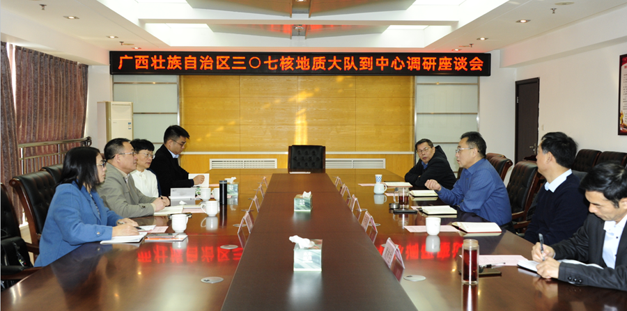12月3日,广西壮族自治区三〇七核地质大队党委书记、大队长李九兴,党委副书记、工会主席吕代杰,副大队长、总工程师李小英等一行到河南省核技术应用中心调研交流。中心主任、党委书记杨力、副主任陈明山及相关单位、科室负责同志参加座谈。
